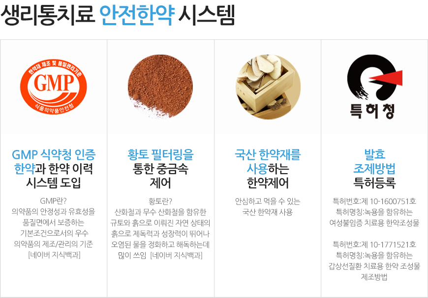 | 치료기간 | 1~3개월 생리주기 | 3개월 | 3~6개월, 3개월간 반복치료 | ||
